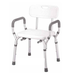 Silla de baño con brazos desmontables para mayor seguridad.