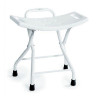 taburete de ducha fabricado en acero pintado y polietileno resistente y duradero.