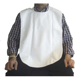 Babero de adulto impermeable que impide que la persona se manche o se moje.