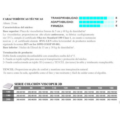 Colchón Viscoelastico 5 cm VISCOPUR 90 cm Funda Rejilla.