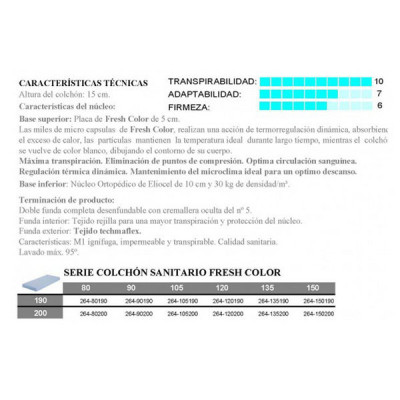Colchón Viscoelástico Sanitario Fresh Color 120 cm