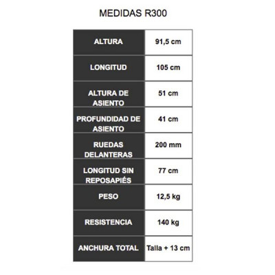 Las medidas varían en función del ancho elegido, en la imagen podrá ver todas las medidas de su nueva silla de ruedas.